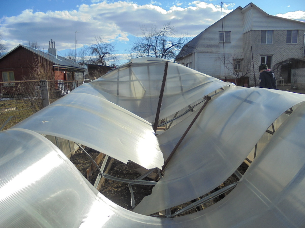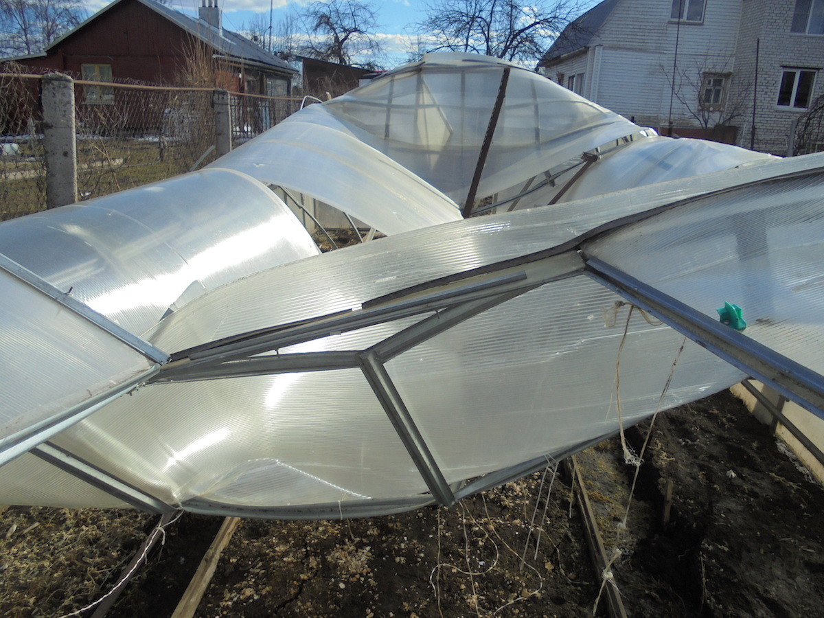 Приезжая на очередной монтаж теплицы мы часто наблюдаем такую картину. Теплицы складываются, ломаются под снеговой нагрузкой. Происходит это потому, что некоторые производители экономят на материалах. Такие теплицы могут простоять всего 1-2 сезона после чего они благополучно ломаются.