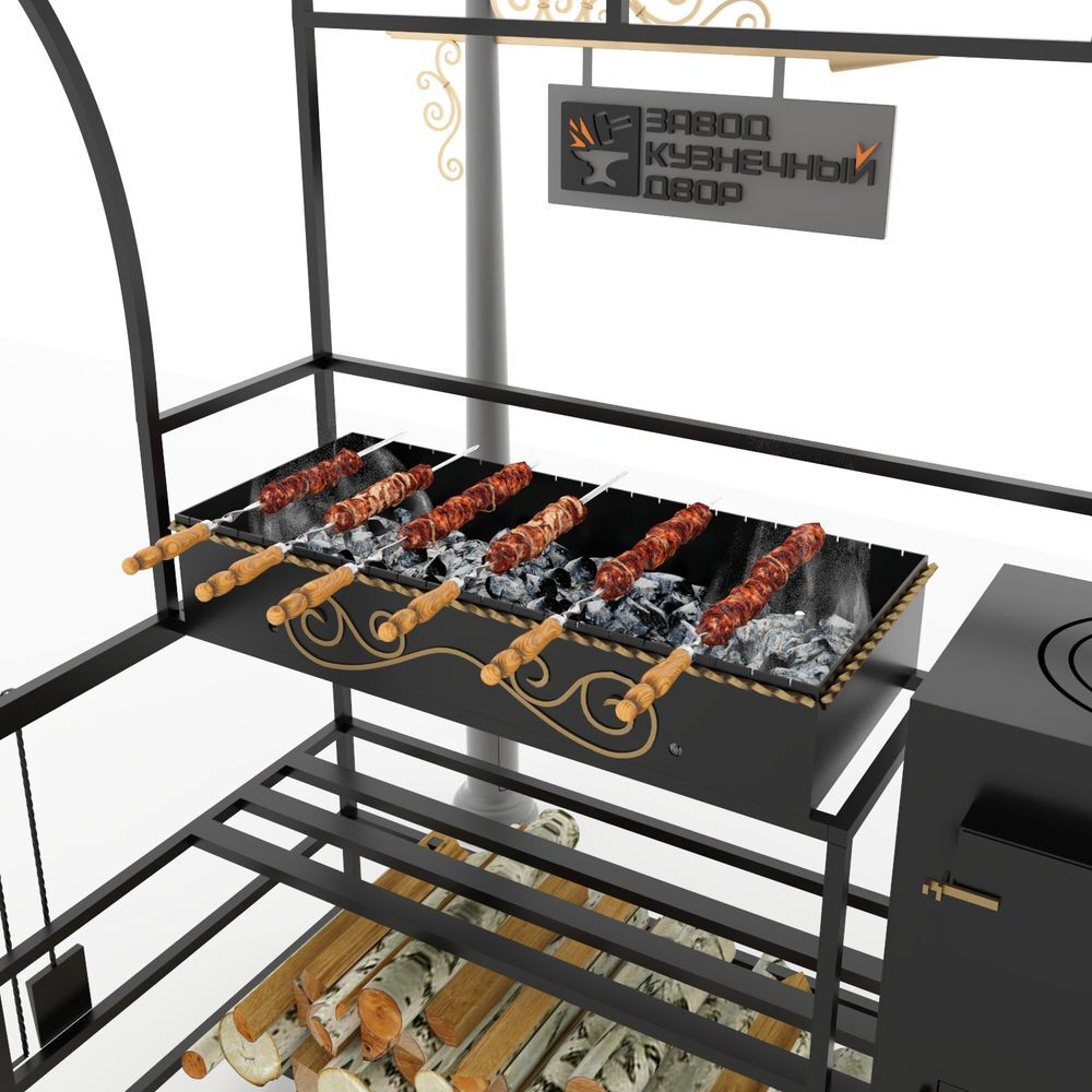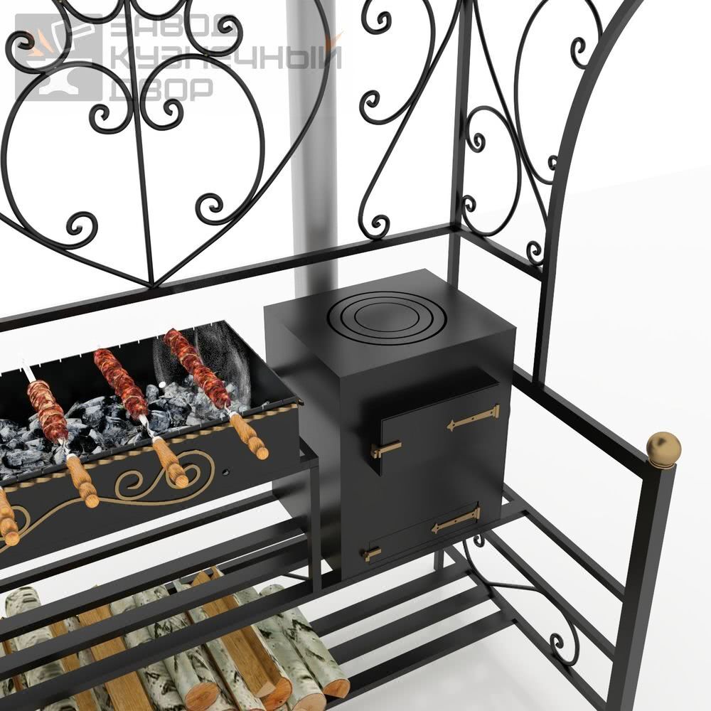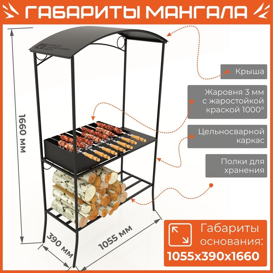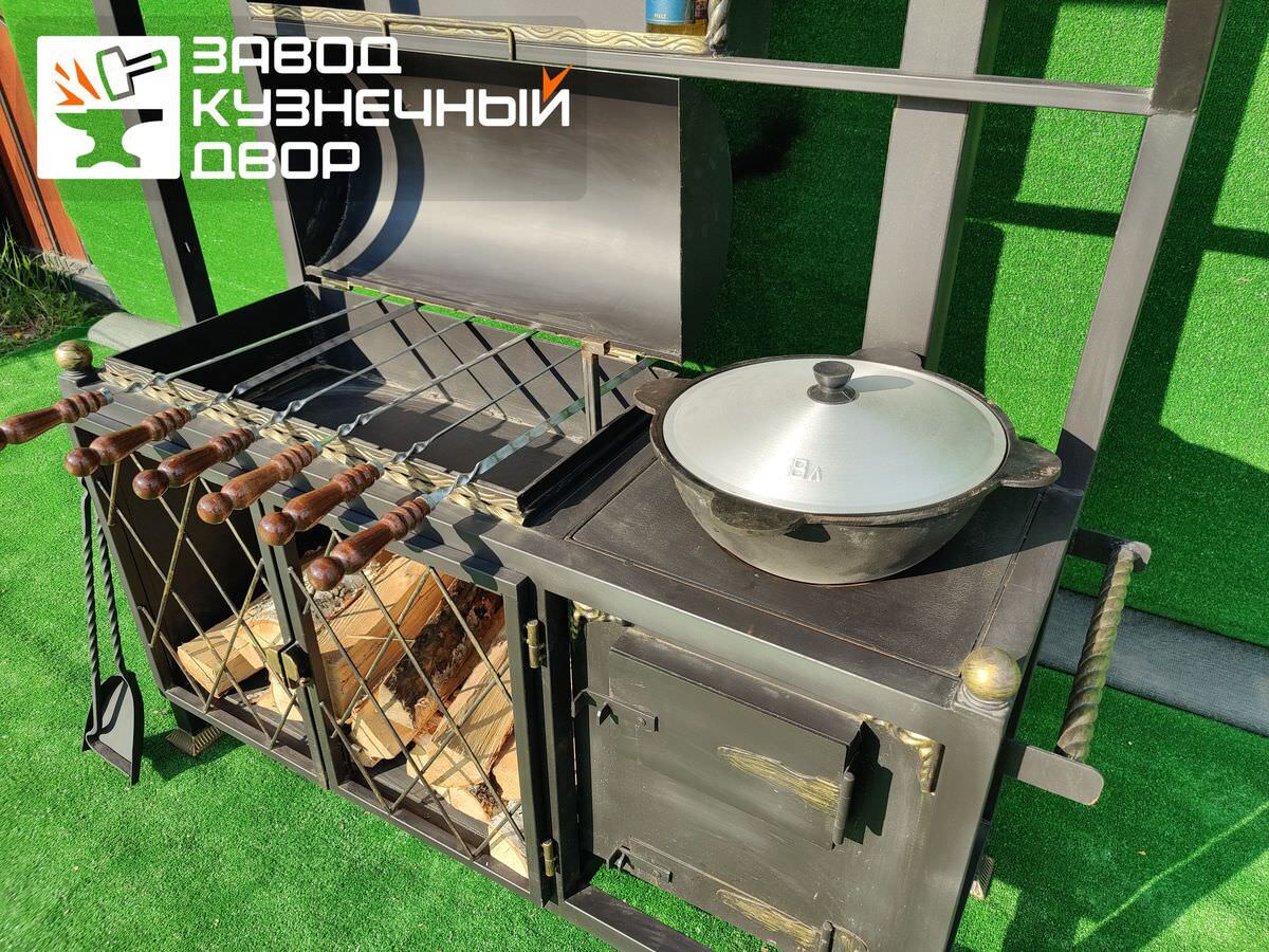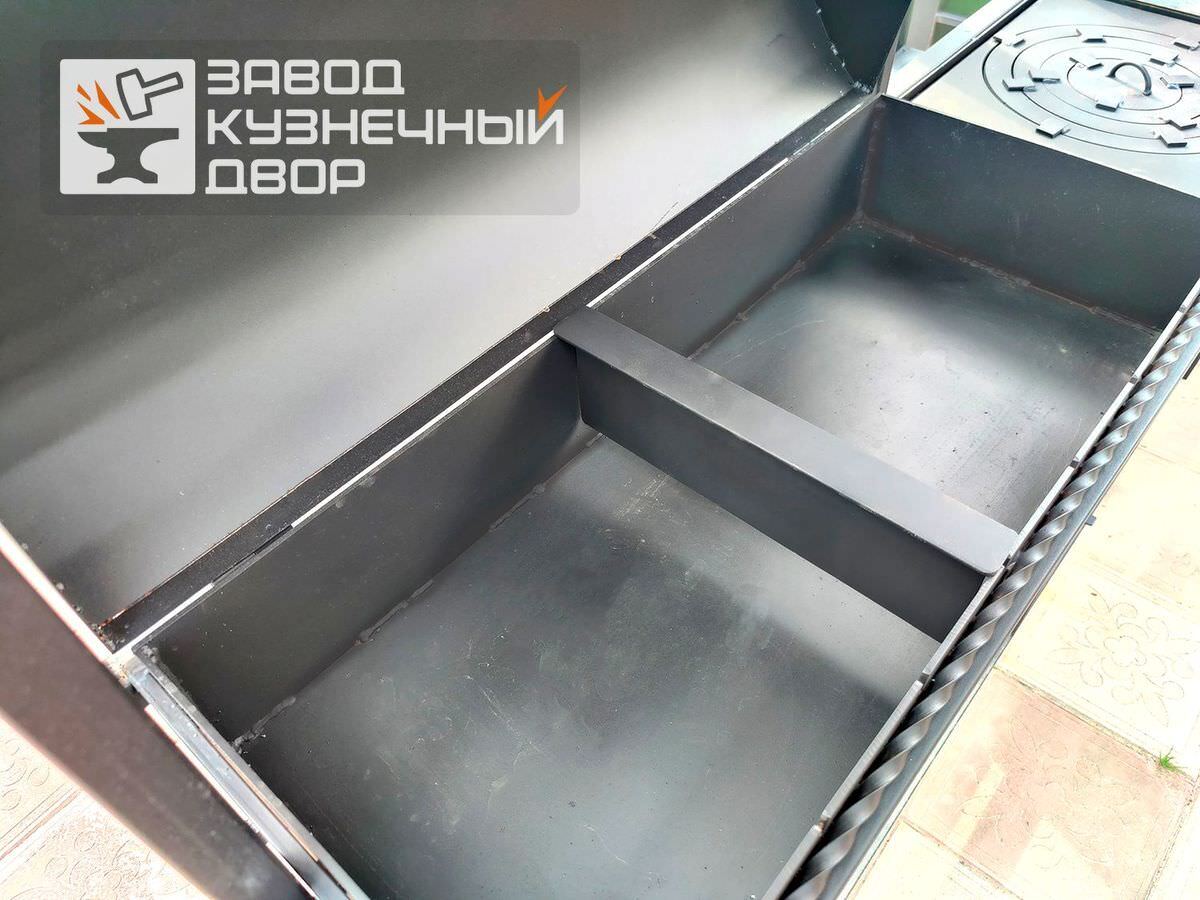 Габариты жаровни: 850х350х150 мм