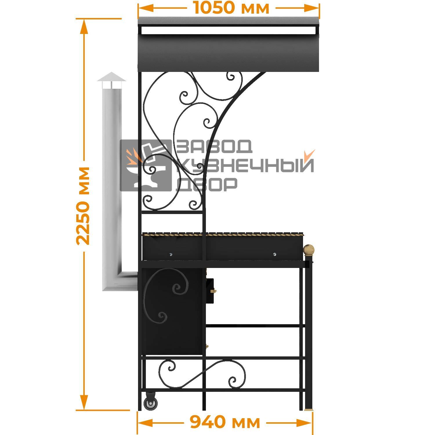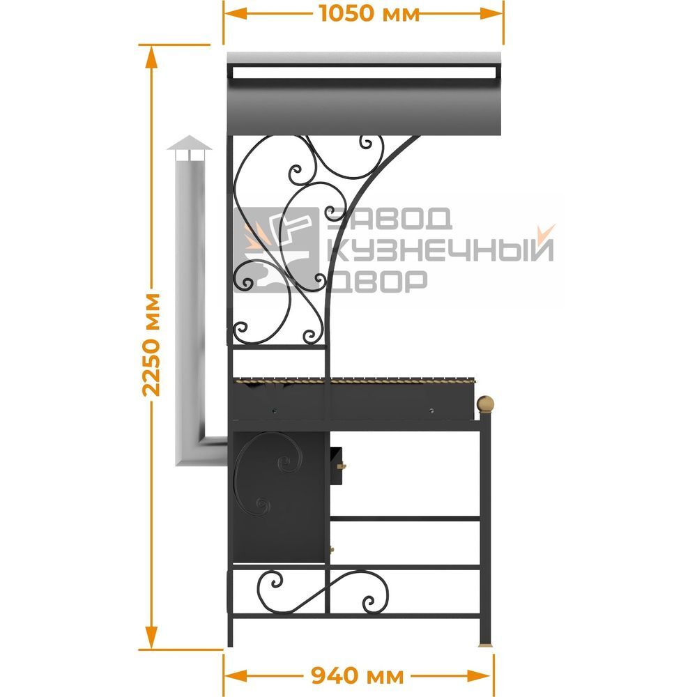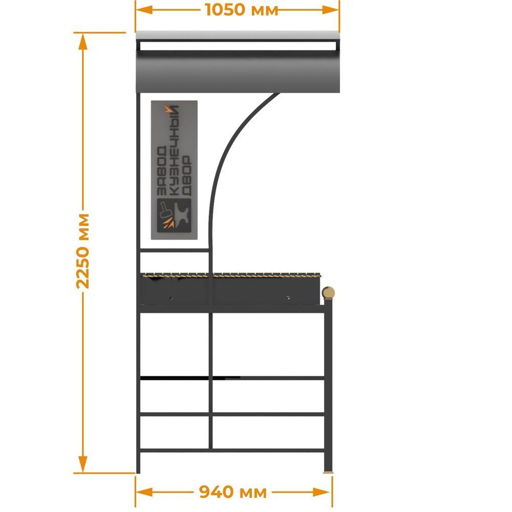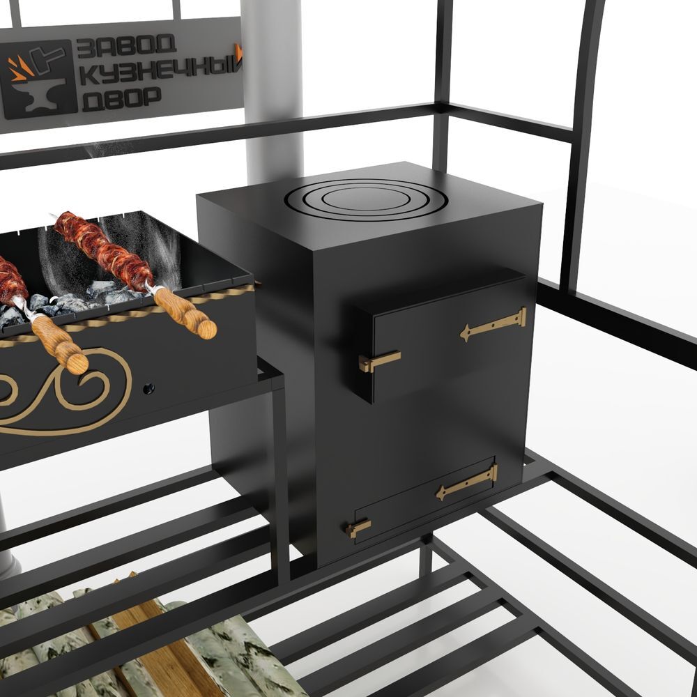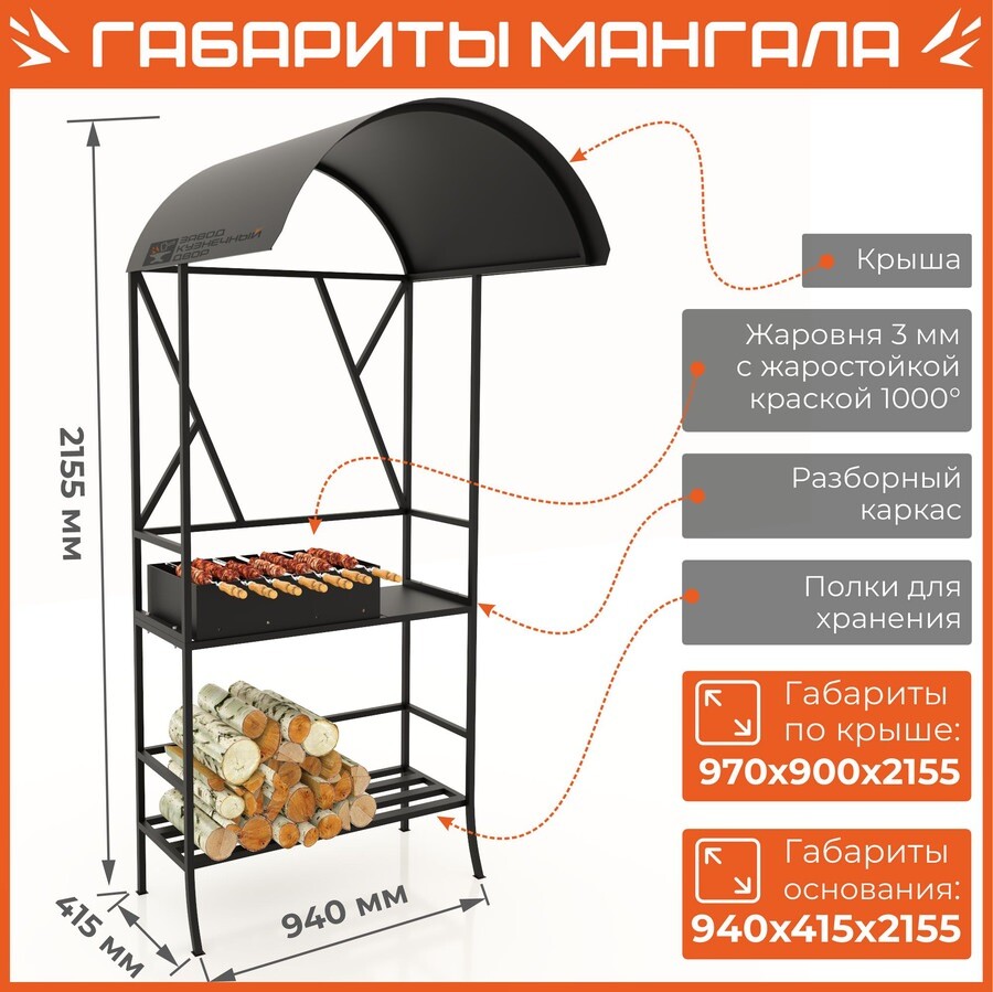 Габариты жаровни: 850х350х150 мм