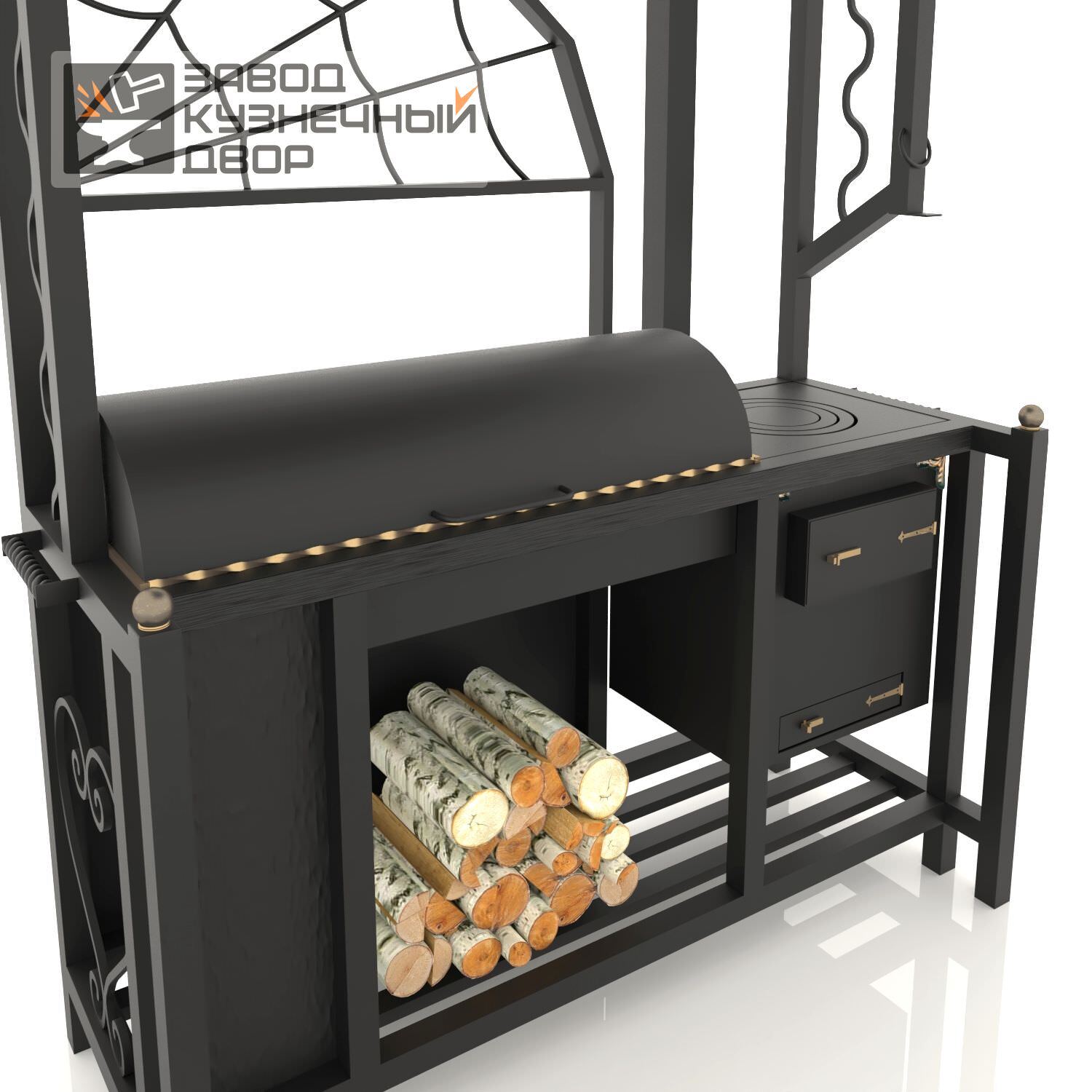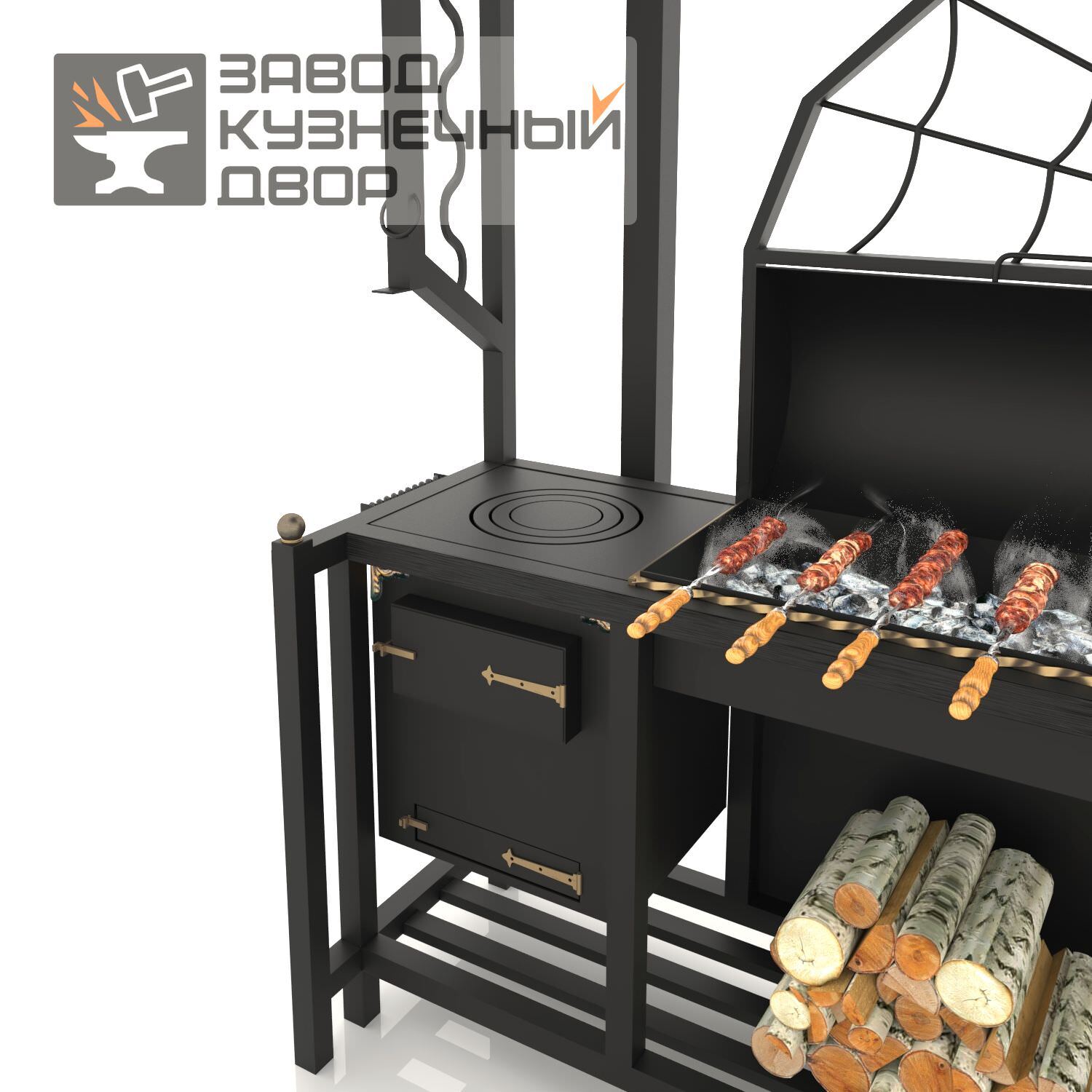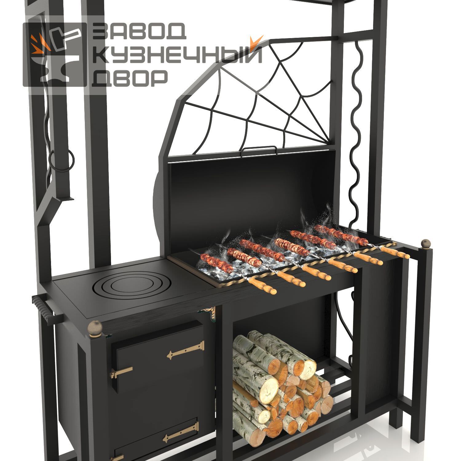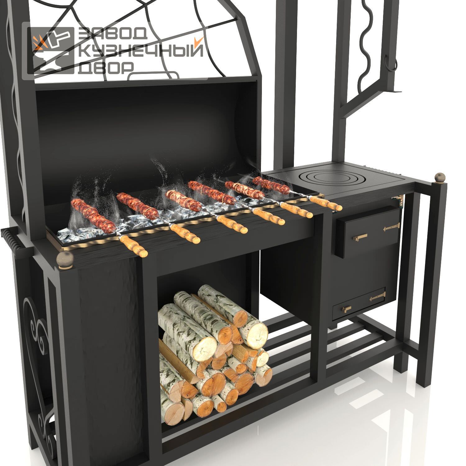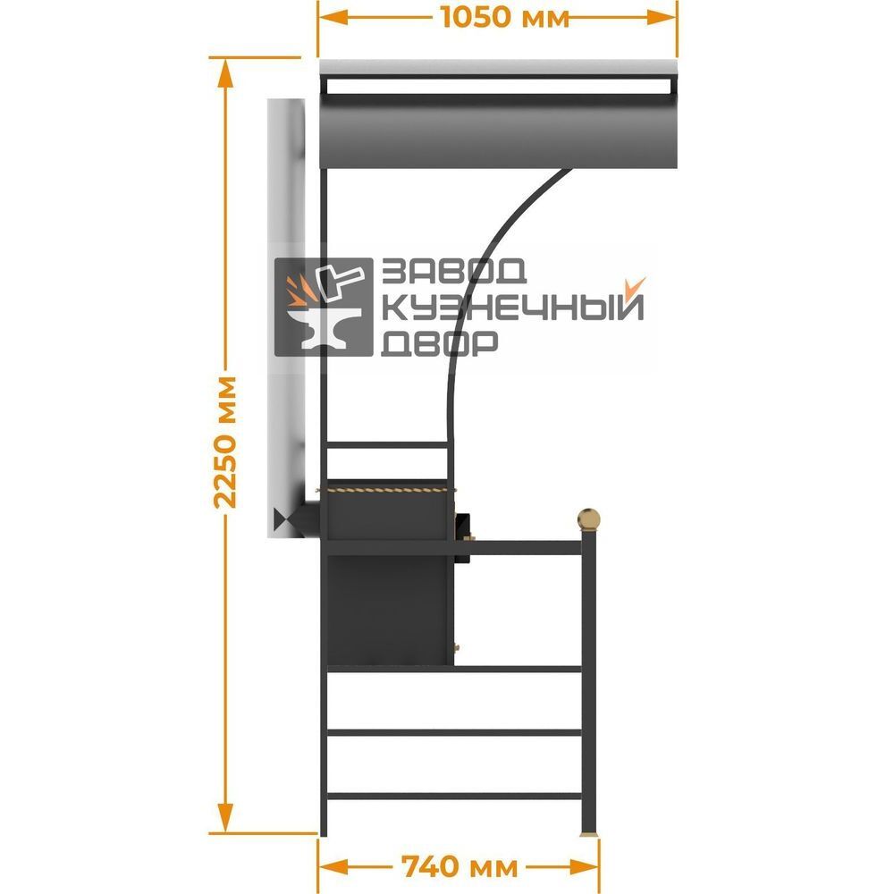 Габариты жаровни: 850х350х150 мм