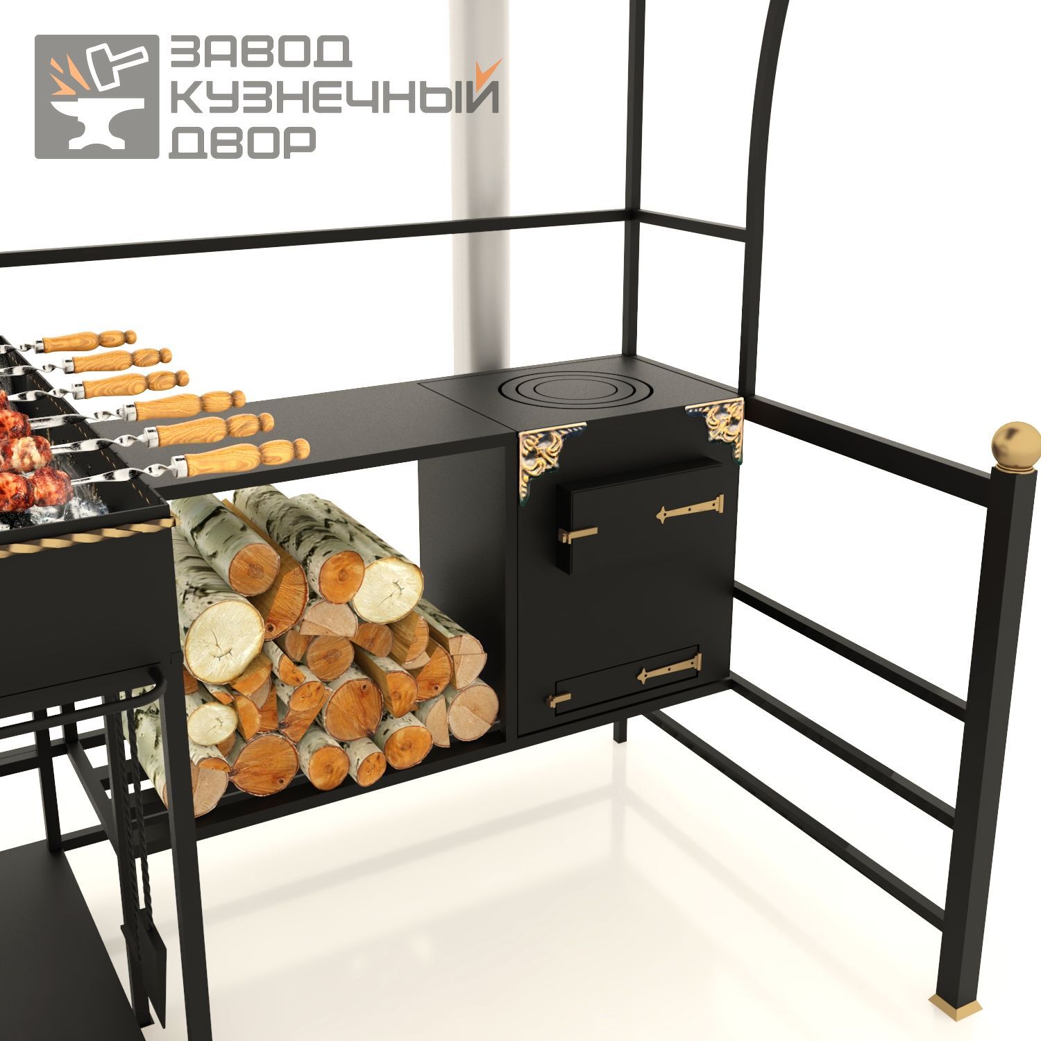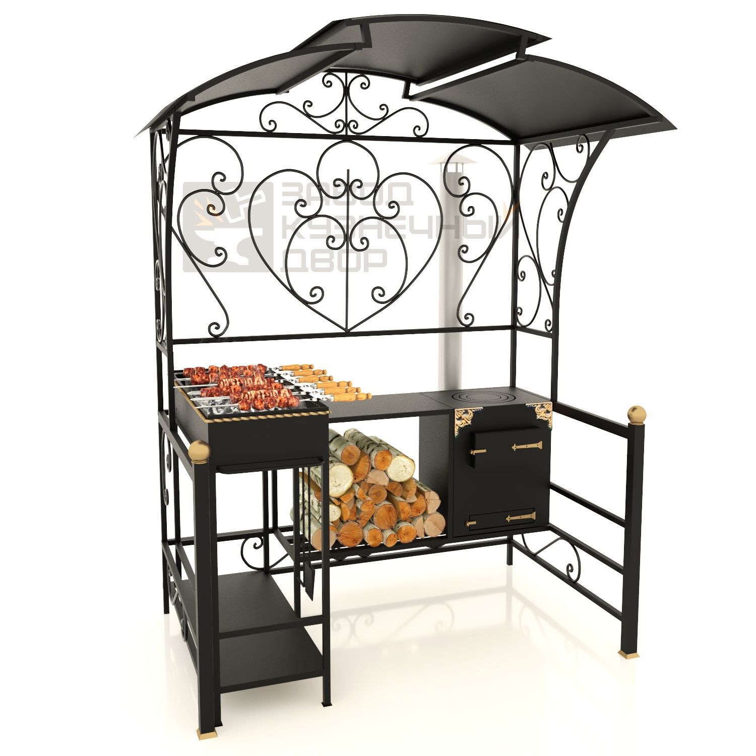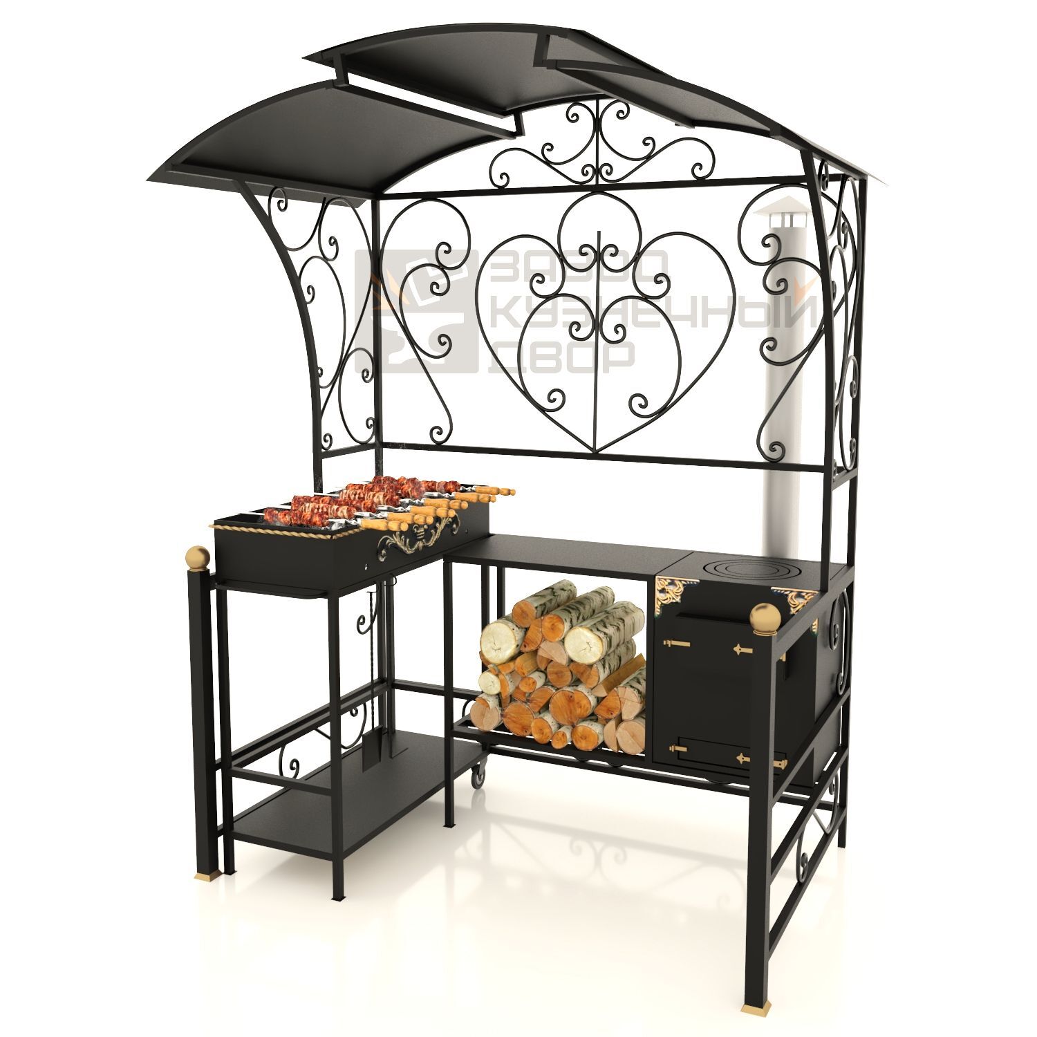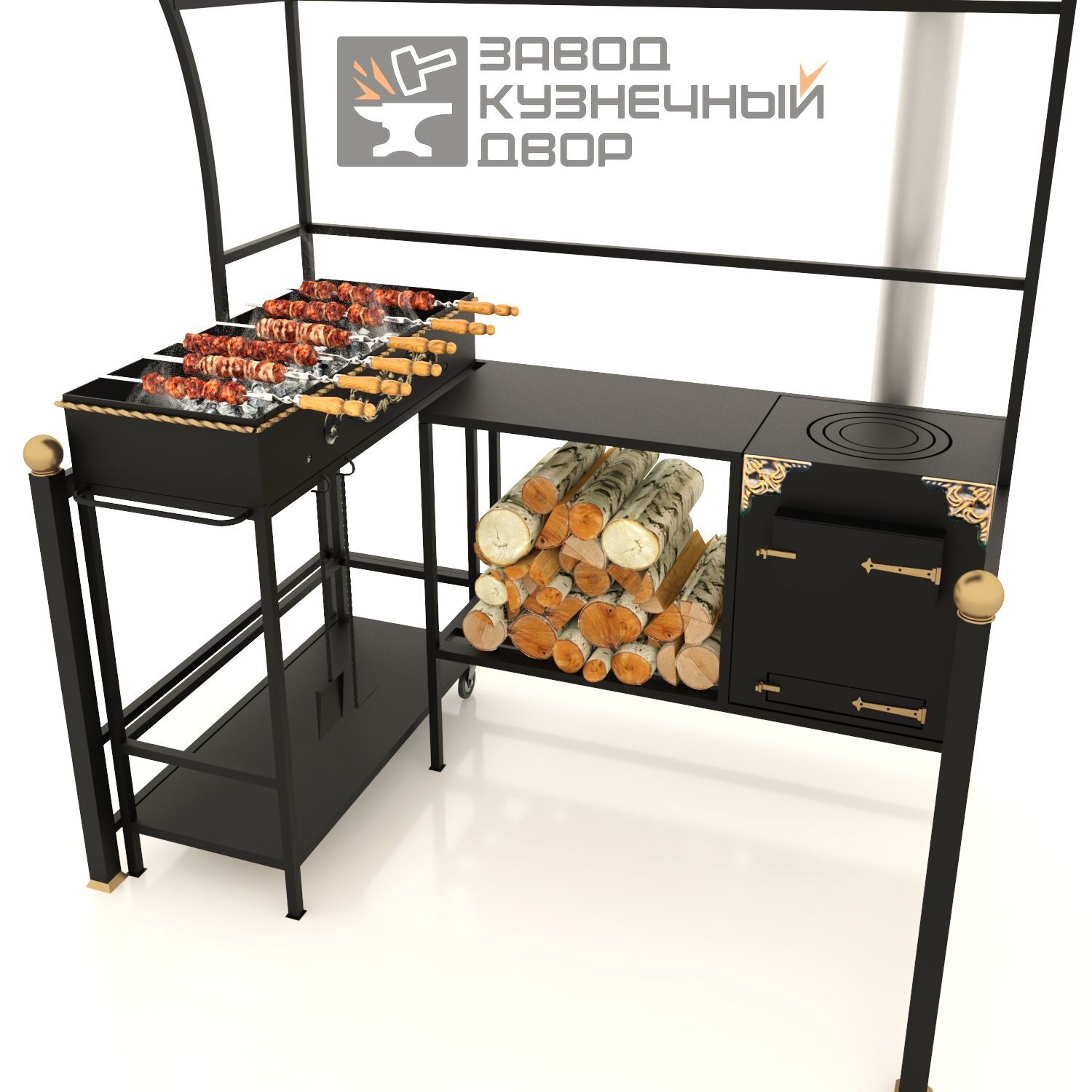 Габариты жаровни: 850х350х150 мм