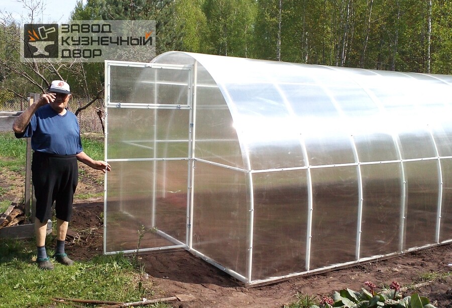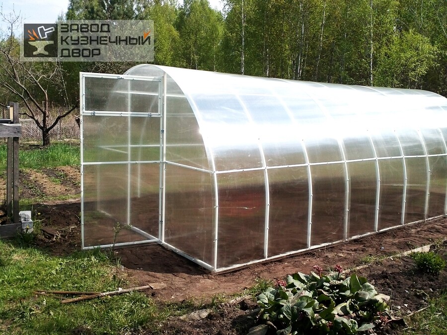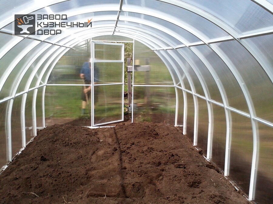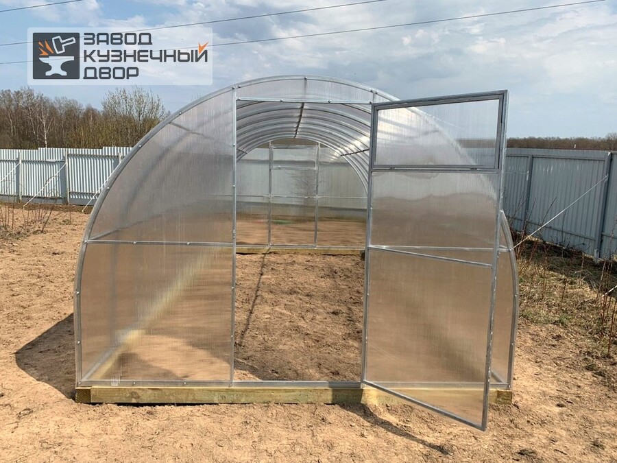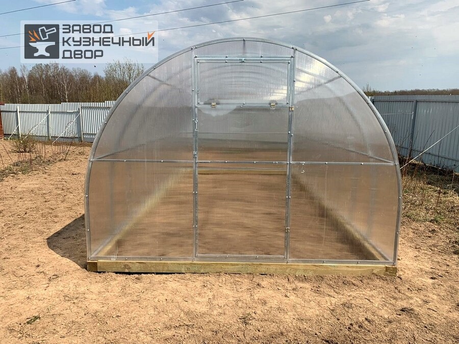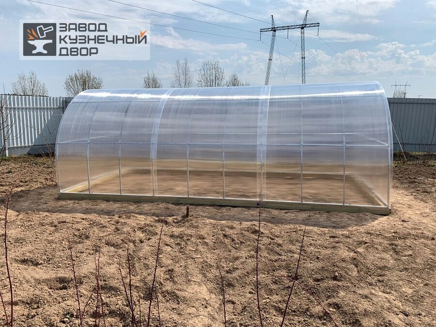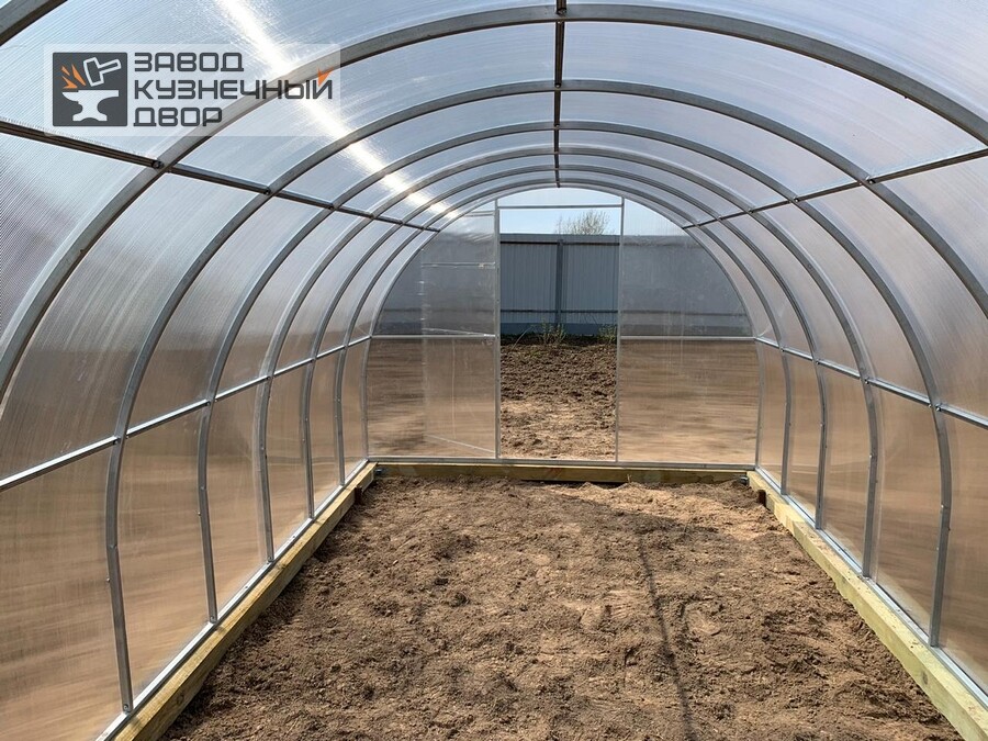 Каркас теплицы изготовлен прочной проф. трубы толщиной 1,5 мм, на которую наносится порошковое покрытие. Дуги - цельносварные, прокатанные по ребру, изготовлены в заводских условиях на специализированном оборудовании. Шаг между дуг - 0,65 м. Не требует ухода в зимнее время года.